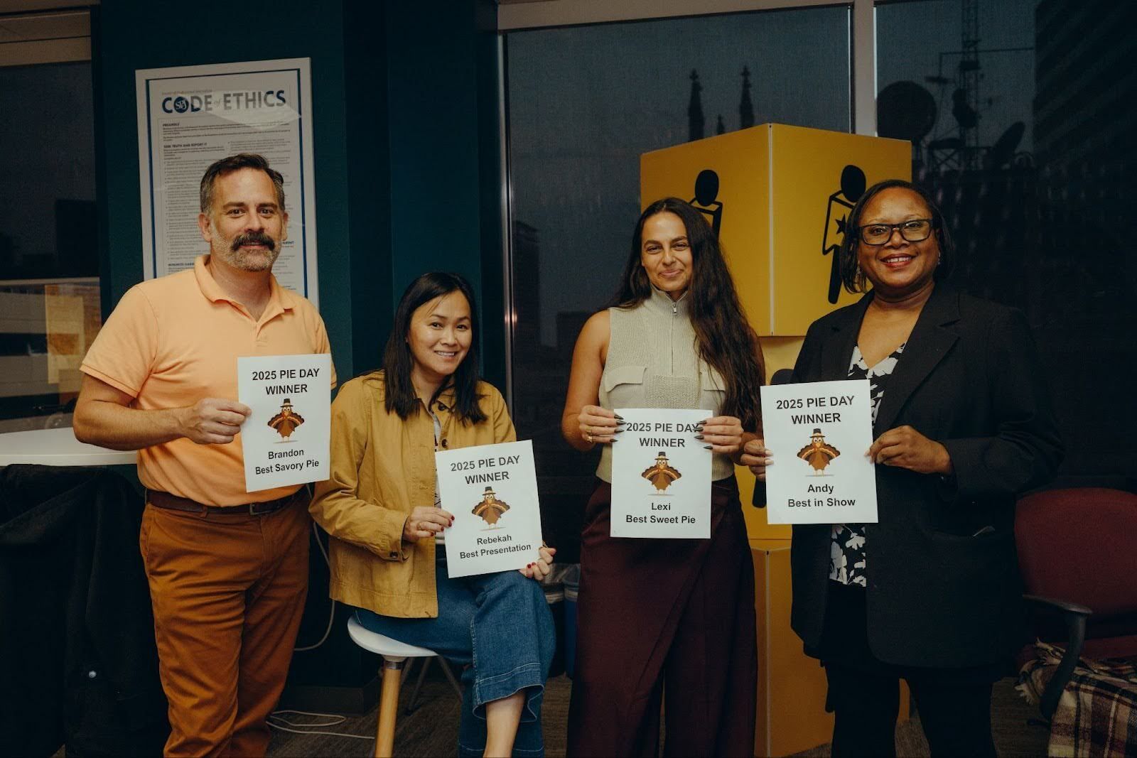 The Texas Tribune’s annual Pie Day — not to be confused with Pi Day — took place this week. The purpose of the long-running tradition is to allow staff to practice baking and eating pies before the Thanksgiving holiday. Everyone who wishes to participate brings a homemade pie to work that day and votes on awards for best sweet pie, best savory pie, best presentation and best in show. It's a gluttonous and gleeful day in our office. And one of ferocious, cutthroat competition.